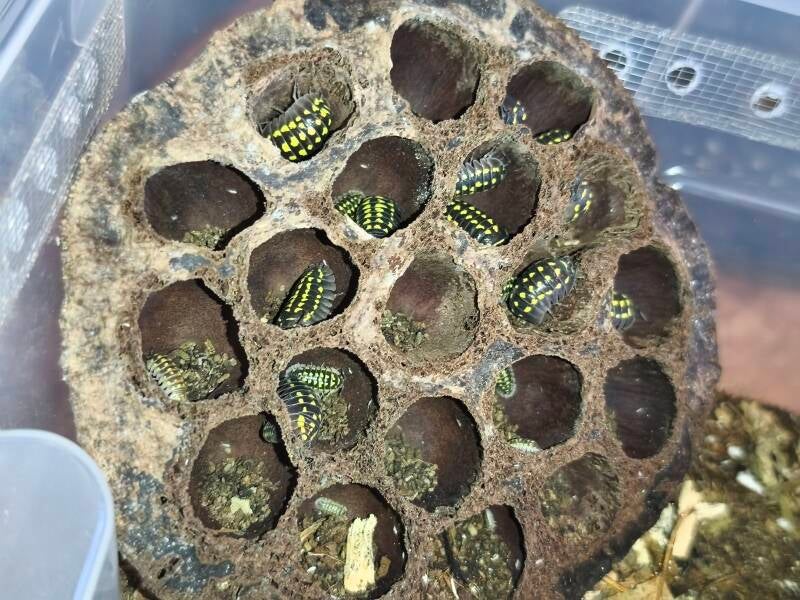 Populaire soorten zoals Armadillidium vulgare, A. gestroi en A. magic potion tonen hun mooiste kleuren in goed geventileerde bakken met veel licht en schuilplekken.
